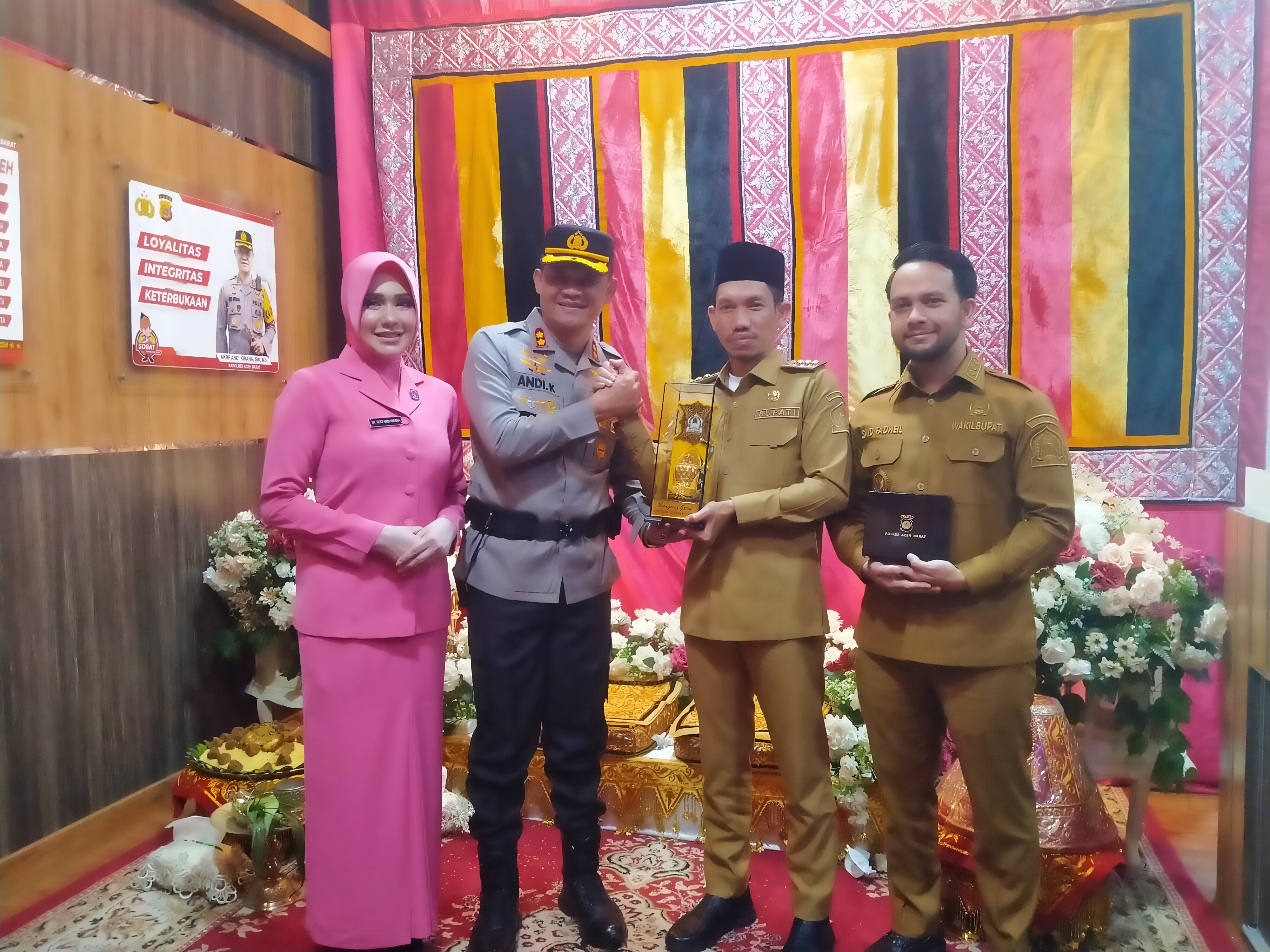 Dalam kesempatan itu, dilakukan serah terima pelakat dari AKBP Andi Kirana kepada Bupati Aceh Barat, dilanjutkan dengan penyerahan cenderamata dari Bupati kepada AKBP Andi Kirana sebagai bentuk penghargaan atas kontribusi dan dedikasinya dalam menjaga stabilitas kamtibmas di Aceh Barat.