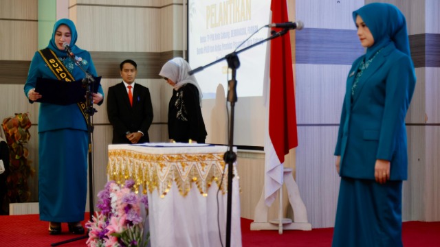 SABANG--Ketua Tim Penggerak PKK Aceh, Marlina Muzakir, melantik Nuri Zulkifli sebagai Ketua TP PKK Kota Sabang, Ketua Dekranasda, Forikan, Bunda PAUD dan Ketua Pembina Posyandu Kota Sabang masa jabatan 2025-2030, di Aula Kantor Wali Kota Sabang, Sabtu, (14/6/2025).