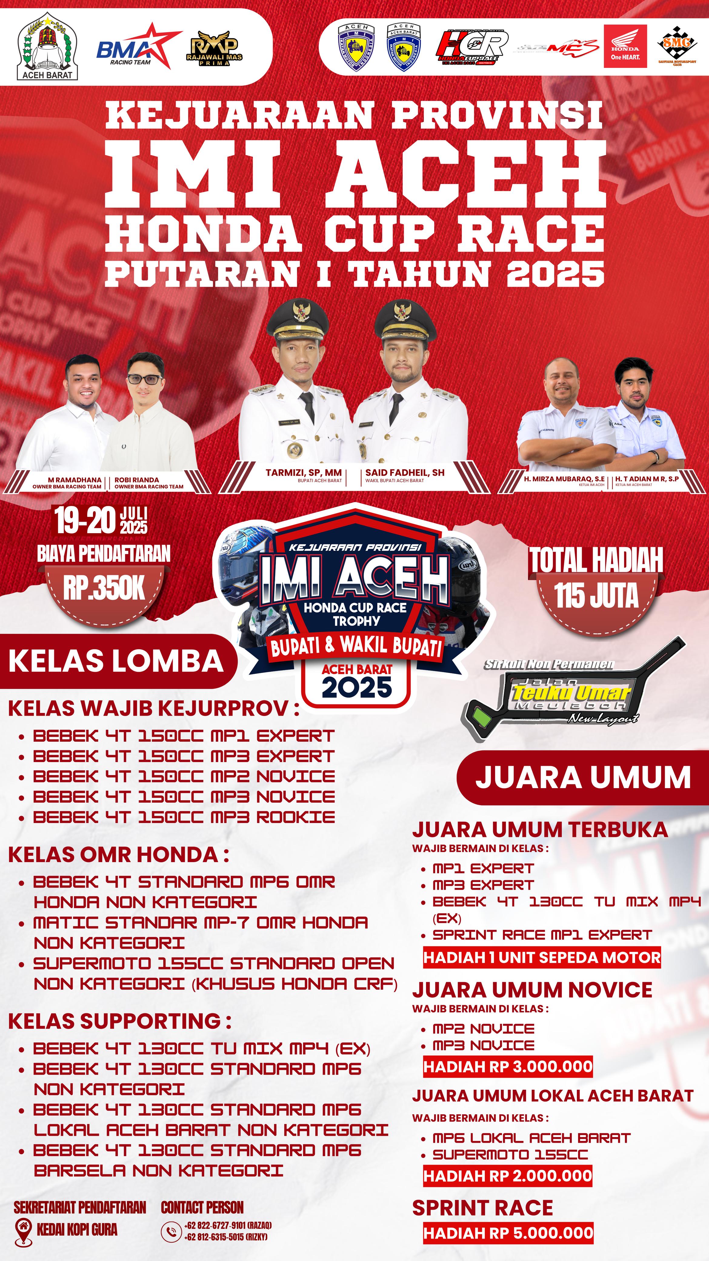 Dengan konsep yang lebih kompetitif dan hadiah yang menggiurkan, IMI Aceh Honda Cup Race 2025 diyakini akan menjadi ajang balap paling ditunggu di Aceh tahun ini.
