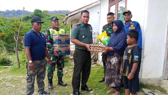 Aceh Barat, Koranindependen.co - Sebagai realisasi rasa kemanusiaan dan kepedulian sekaligus gerak cepat dalam menghadapi masa panik, Danramil 01/SM Kodim 0105/Abar Lettu Inf Hendrianus Putra memberikan bantuan Sembako kepada Bapak Rumidi (51) korban musibah kebaran Rumah di Desa Drien Sibak Kecamatan Sungai Mas, Rabu (10/9/2025)