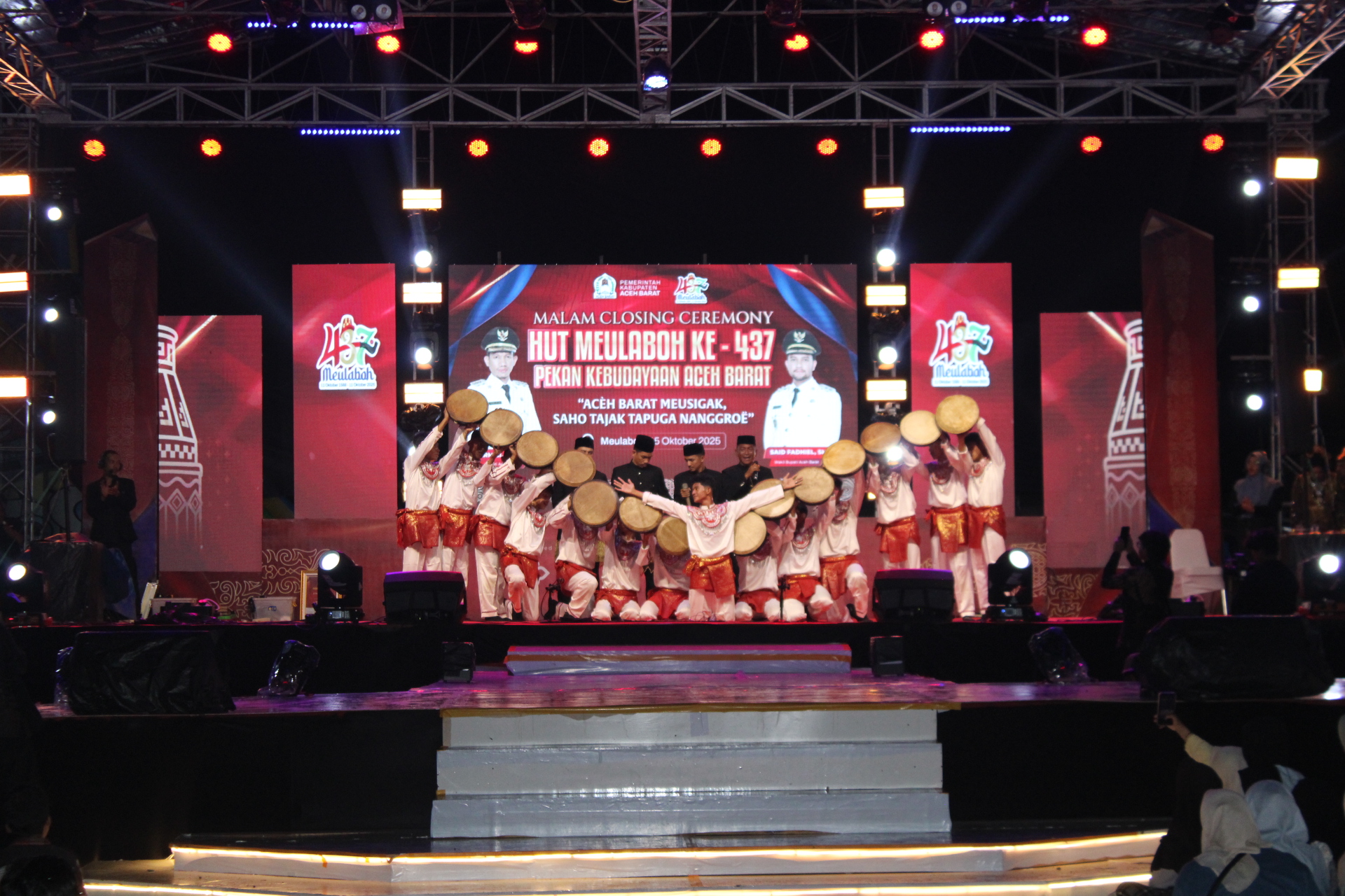 Perayaan HUT Meulaboh ke-437 dan PKAB 2025 resmi ditutup dengan penampilan rapa'i geleng dari syeh Masri cs, yang menambah kemeriahan acara. Ratusan ribu masyarakat tampak antusias mengikuti rangkaian kegiatan hingga akhir, menjadikan perayaan tahun ini salah satu yang paling berkesan