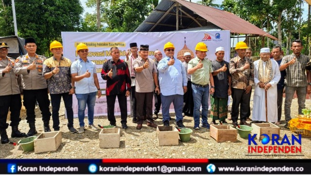 Meulaboh, Koranindependen.co - PT Megalanic Garuda Kencana (MGK) melaksanakan peletakan batu pertama renovasi pembangunan masjid di Gampong Sipot, Kecamatan Sungai Mas, Kabupaten Aceh Barat, Minggu (16/11/2025). Pembangunan masjid ini merupakan bagian dari program Corporate Social Responsibility (CSR) perusahaan yang bergerak di bidang pertambangan tersebut.