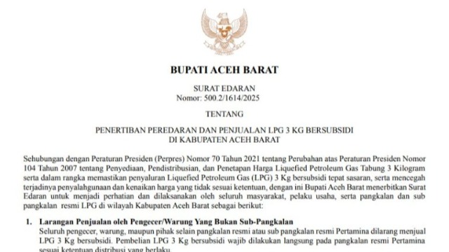 Dalam surat edaran tersebut, pemerintah daerah menegaskan sejumlah ketentuan yang wajib dipatuhi oleh masyarakat, pelaku usaha, serta pangkalan dan sub-pangkalan resmi Pertamina di wilayah Aceh Barat.